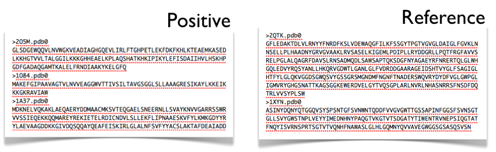 As was mentioned before, the whole story begins with two protein datasets. One of them will be considered a positive dataset and the other a negative. This is purely for interpretation purposes and, as we will see later, does not introduce any bias in the decision.