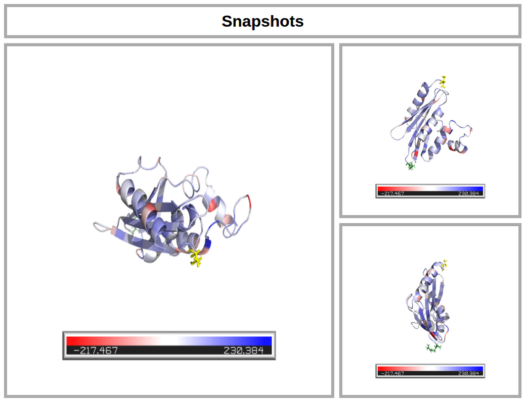 The user should upload a valid PDB file using the upload button. Due to running times, the size of the provided PDB structure must not exceed 500 residues. Optionally the user can choose a custom submission label and provide an email address to be notified on the job completion. The server automatically generates a unique reference number for the submission. By clicking the “Submit query” button, the job is submitted to the computation queue and the user can load the output page that is refreshed every 10 seconds. The user can bookmark the output page and check later the results.